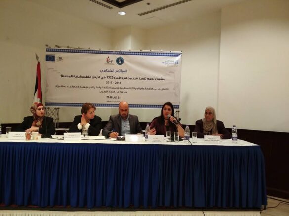 عقد الاتحاد العام للمرأة الفلسطينية المؤتمر الختامي لمشروع القرار الدولي 1325 الذي نفذ بادارة الاتحاد العام للمرأة بالوطن بلقاءات وتدريبات وورش عمل وتوثيق ورصد للانتهاكات وشارك في المؤتمر عضوات فرع نابلس من الهيئة الادارية والمتدربات والمنسقات للمشروع والاطر النسائية والجمعيات والمؤسسات النسوية