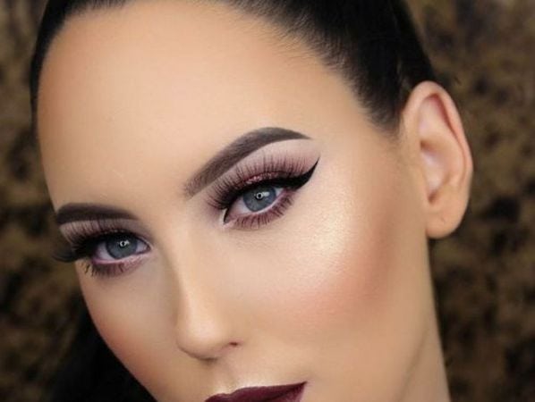 يتماشى مع شكل العيون المبطنة ظل الجفون فاتح اللون على الجفن المتحرك، ومسحوب غامق قليلًا عند عظمة الحاجب، ولكن أبرز ما يمنح هذه العين جمالًا هو الأيلاينر المجنح المسحوب عند طرفي العينين.