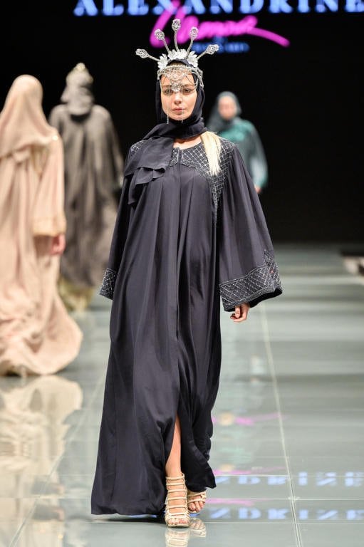 وبأسلوب كلاسيكي، قدمت ماركة Maison Alexandrine عبايات أنيقة وعملية بتصميم واسع ومزينة بتطريزات لامعة على الصدر والأكتاف، منها باللون الأسود، وتصاميم أخرى باللون البرغندي.