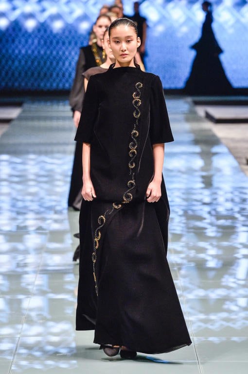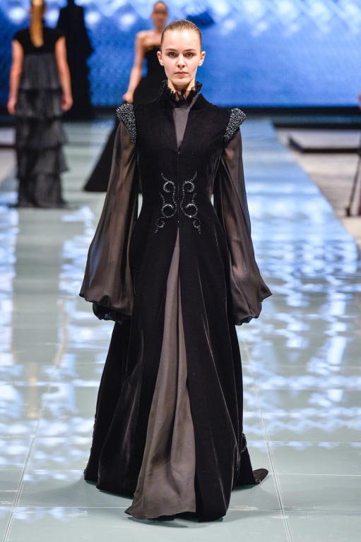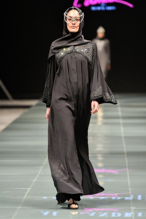 ولإطلالة جذّابة ومرحة، صممت دار Mua Mua Dolls عبايه سوداء مرصعة بالأحجار الملونة على الأطراف، كذلك قدمت الماركة قفطانًا عصريًا بقماش الشيفون مع طبعات حيوية تزينه.