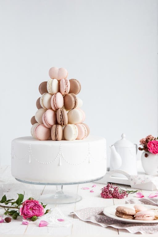 – زيّني أيضاً قالب زفافك بحلوى المعكرون الفرنسية الشهيرة، التي تعتبر جزءاً لا يتجزّأ من زينة الأعراس العصريّة هذا الموسم.