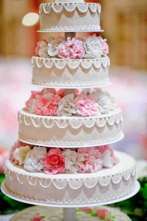 -اطلبي نصيحة منسّق الورود الخاصّ بزفافك، قبل شراء كيكة الزفاف المزيّنة بالورود.