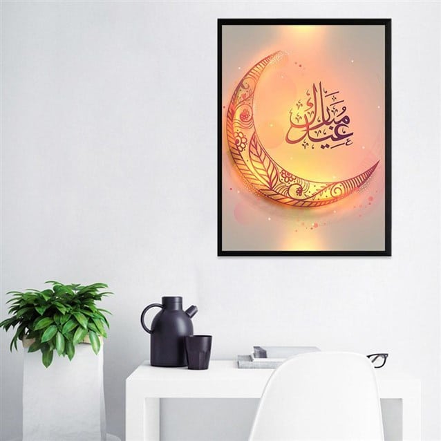 يمكنك وضع لوحة مضيئة على الجدران البيضاء تحمل شعار العيد، مع الزخرفات التي ترافق رسمة القمر. فهذه الخطوة تعمل على تجديد ديكور المنزل لتضفي جمالاً ساحراً مع الاثاث الكلاسيكي.