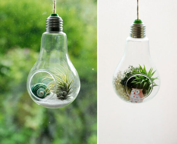ومن الجميل تعليق هذه اللمبات بحبال “الخيش” وتخصيص مكان لها على أحد الجدران، فعندما نختار نباتات خضراء جميلة ومتنوعة وننسقها بشكل متناغم ستنقل هذه اللمبات سحر الطبيعة الخضراء لمملكتك.