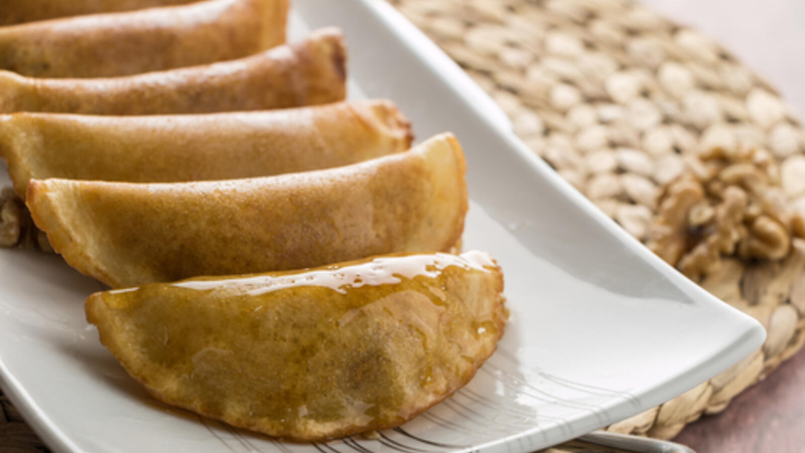 9. ضعي عدة أقراص من القطايف المحشوة في الزيت الساخن وإقليها لتصبح ذهبية اللون.