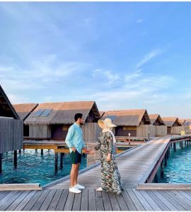 الاطلالة الحيادية مع لوني الأبيض والأسود، بدت جذابة وأنيقة على الشاطىء، لكنها ستكون مناسبة أكثر ليومكِ العادي، وكذلك لسهراتكِ المسائية. كما أعجبنا حزام الخصر العريض الذي زين الفستان، وأضاف مظهرًا رشيقًا لاطلالة مروة.