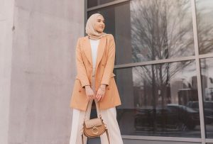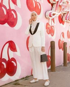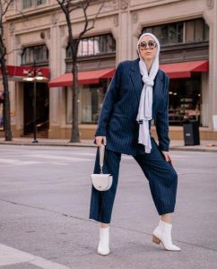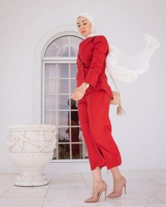 – اعتمدي البدلات المؤلفة من سترات قصيرة لتزيدي طولك شرط أن يكون البنطال فضفاض القصة لتضمني إطلالة ساترة تناسب حجابك وفي نفس الوقت تخفي القسم المكتنز من قوامك.
