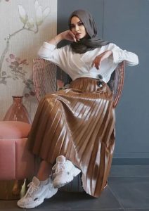 الجيب الجلد موضة حلو جداً وجديدة بتدي لمسة عصرية ومودرن للوك الشتوي، الجيبة الجلد اللي بطيات هي الأفضل