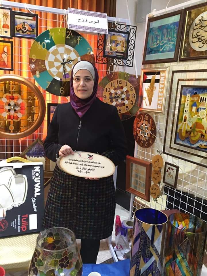 المهندسة لينا قعدان مهندسة معمارية احترفت الرسم على الزجاج واستطاعت مشغولاتها ان تصل لكافة أنحاء العالم لدقة عملها ، ويتراوح سعر القطعة بين ١٠٠ ل ١٠٠٠ شيقل .