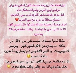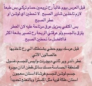 قبل حفل الزواج ، على العروس أن تولي قسطًا وافرًا من الوقت للعناية بجسدها وتعطيره حتى تتمتع برائحة لا تقاوم في أهم أيامها .