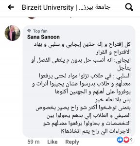 أثار قرار جامعة بير زيت الصادر اليوم حول آلية التعامل الأكاديمي مع الفصل الدراسي الحالي بسبب الوضع العالمي وانتشار الوباء الناجم عن فيروس كورونا حفيظة الطلبة في الجامعة ، ويتعلق القرار بحسب ما نشرته الجامعة عبر صفحتها على الفيس بوك بكيفية الشكل التي ستكون عليها المسيرة التعليمية لهذا الفصل الدراسي بسبب حالة الطوارئ العالمية والفلسطينية بحيث يتم اعتماد تقدير ناجح لمن يقوم بعمل الحد الأدنى المطلوب منه وفق نظام التعليم الإلكتروني عن بعد .