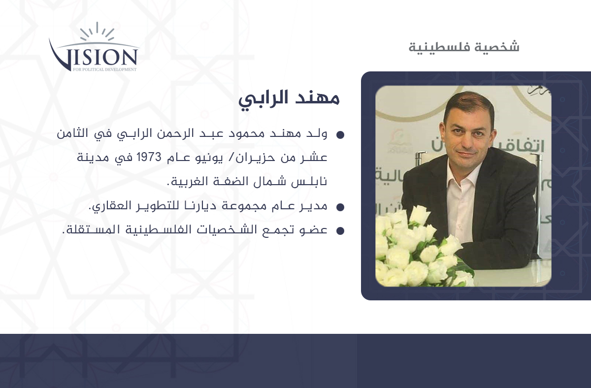شخصية اليوم هي لرجل الأعمال الشاب مهند الرابي صاحب العديد من المبادرات الاجتماعية والريادية التي نفذها على مستوى فلسطين خلال السنوات العشر الماضية.