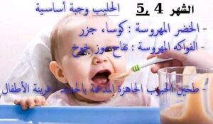 في الشهر الرابع والخامس إلى جانب الحليب يمكن البدء بإضافة بعد الخضراوات والفواكه العروسة جيدًا .