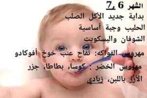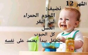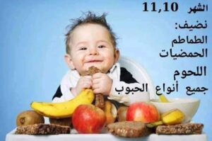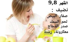 الشهر الثامن والتاسع البدء بإدخال البيض والسمك والمعكرونة .