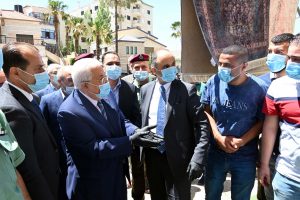 وفي الاطار ذاته يذكر أن الرئيس محمود عباس قد قام بجولة تفقدية بمحافظة رام الله والبيرة لتفقد المواطنين والتأكد من مدى الالتزام باجراءات السلامة ، وقد قام بتوزيع الكمامات على المواطنين .
