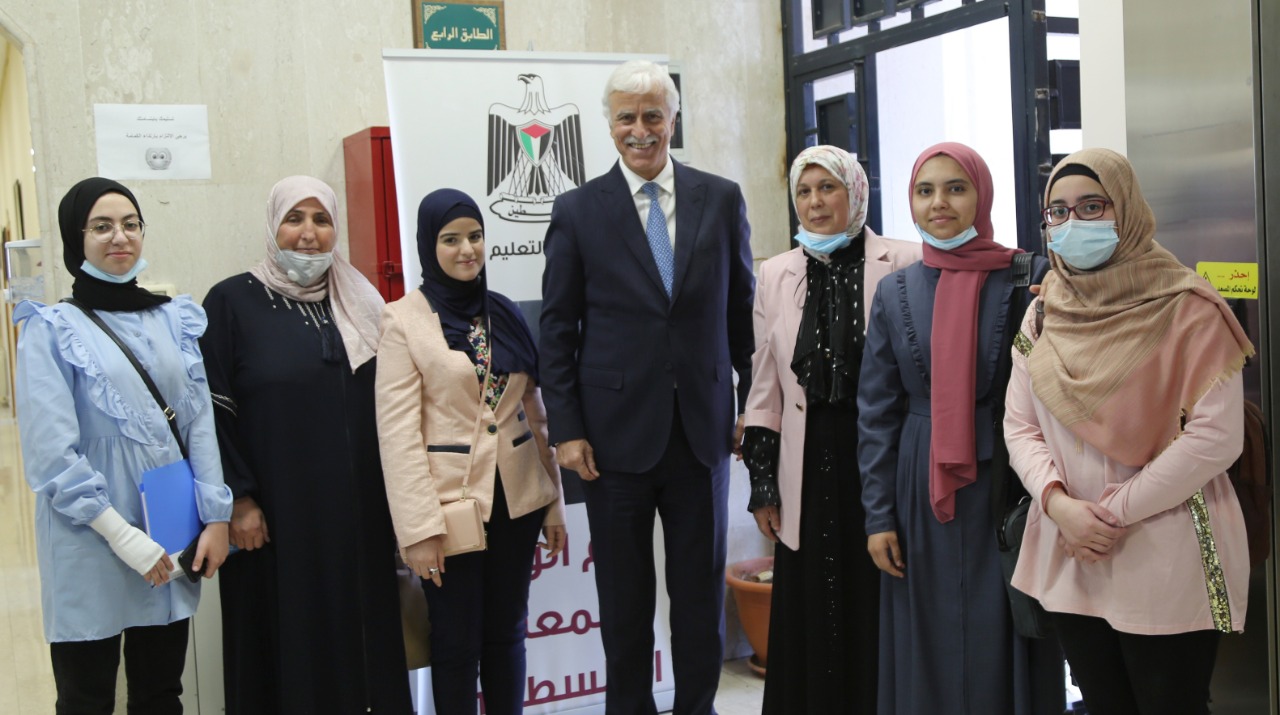 استضاف وزير التربية والتعليم أ.د. مروان عورتاني، في مقر الوزارة، اليوم، ثلاث طالبات باحثات متميزات من الصف الحادي عشر العلمي في مدرسة بنات دورا الثانوية بمديرية جنوب الخليل، وهن: زينة سيد أحمد، وسلسبيل أبو عرقوب، وليان الرجعي؛ إذ قدمن تعريفاً حول بحث مشترك حمل عنوان: “علاج مرض جلدي نادر باستخدام تقنية النانو”.