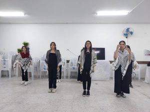 وقد اشتمل افتتاح البازار على فقرة فنية ودبكة قدمتها فرقة فتيات الجمعية النسوية.