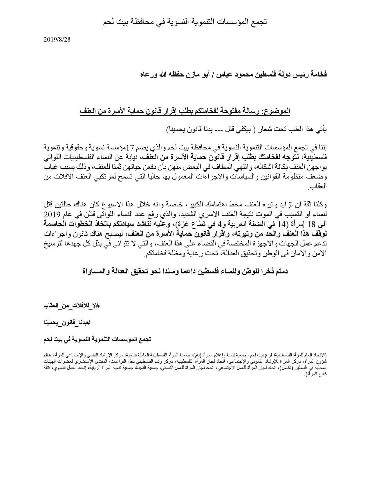 تام تطالب بإقرار قانون حماية الأسرة من العنف