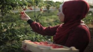 وأضافت: “يمتاز مشروعي بأنه في أرض معزولة على تربة صناعية دون استخدام أي مواد كيماوية، إلى جانب استخدامي لطرق حيوية في مكافحة الآفات والأمراض الزراعية، وذلك لإنتاج محصول الفراولة الآمن”.