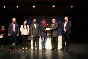 كرم المهندسة الدكتورة صفاء ناصر الدين نائب رئيس جامعة القدس لشؤون القدس ووزيرة الاتصالات وتكنولوجيا المعلومات السابقة في الحكومة الفلسطينية، وذلك في ملتقى “المبدعات العربيات الأول” لعام 2019.