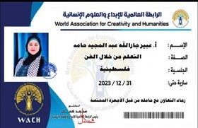 رام الله- حصلت المعلمة د. عبير حامد على عضوية الرابطة العالمية للإبداع والعلوم الإنسانية، تقديرًا لمشوارها المهني والإبداعي الذي رافقه إطلاق مبادرة التعلم من خلال الفن، التي تخطت حدود المحلية الى العالمية، وتوجت بلقب أفضل مبادرة عربية في العالم في بطولة كأس العالم للمبدعين العرب (وتعرف بمسابقة أفضل العرب في العالم) لعام ٢٠٢١، التي نظمتها المجموعة العربية، بمشاركة مبدعين في مجالات شتى من ١٧ دولة عربية أو من أصول عربية من دول العالم المختلفة، إضافة إلى عرب مقيمين في دول أجنبية بالعالم.
