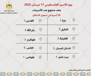 ونشرت مؤسسة الضمير أحوال الأسيرات في الأسر، على النحو التالي:
