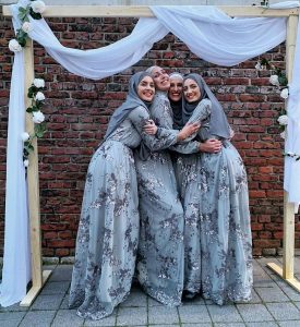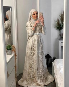كذلك تميل إلى ستايل الفساتين البوهيمية المزدانة بالكرانيش على الأكمام، مثل تصميم الجرس، وأيضًا على ذيل الفستان لتضيف تفاصيل حيوية تميز التصميم عن شكل العباية.